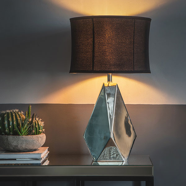 View full detailsA modern table light for contemporary interiors. Brushed nickel finish with clear glass shade and inline switch. FEATURES:• 40W E27 GLS (bulb not i...