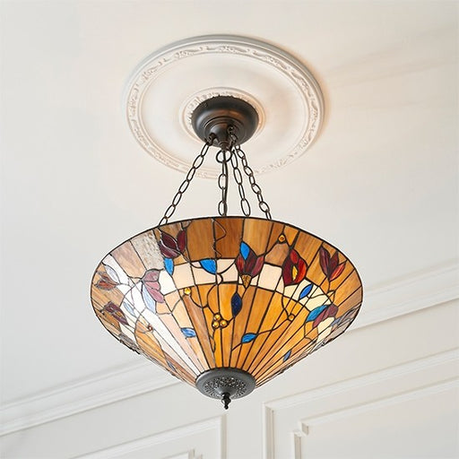 View full detailsBernwood Large Inverted Tiffany Glass 3 Lights Ceiling Pendant Light In Dark Bronze
