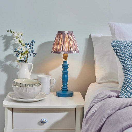 View full detailsBibury And Ikat 16cm Marlin Blue Fabric Shade Table Lamp In Satin Pink Clay