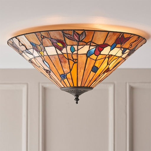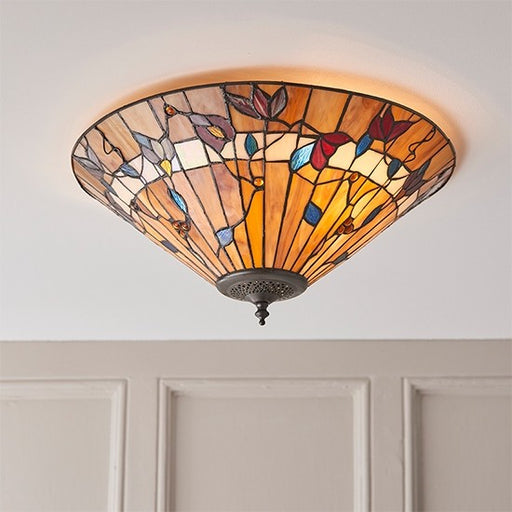 Bernwood Medium Tiffany Glass 2 Lights Flush Ceiling Light In Dark Bronze