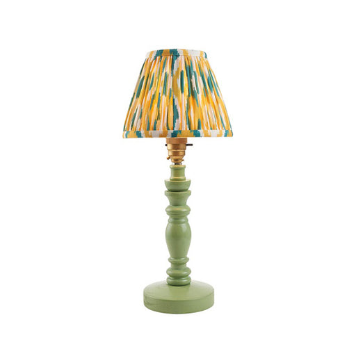 Bibury And Ikat 16cm Yellow And Jade Fabric Shade Table Lamp In Satin Cotswold Green