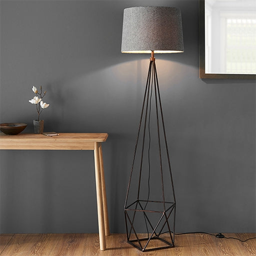 View full detailsApollo Grey Fabric Floor Lamp In Aged Copper