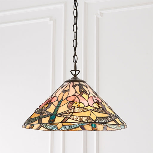 View full detailsAstoria Large Tiffany Glass Ceiling Pendant Light In Dark Bronze