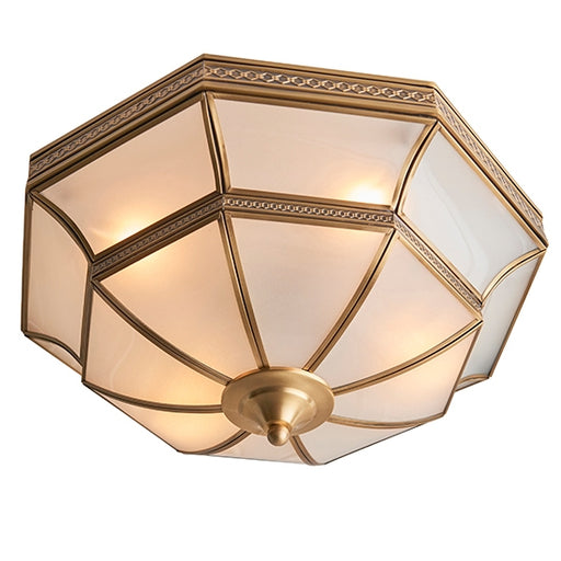 View full detailsBalfour Frosted Glass 4 Lights Flush Ceiling Light In Antique Brass