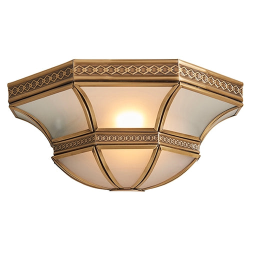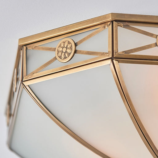 View full detailsBannerman Frosted Glass 4 Lights Flush Ceiling Light In Antique Brass