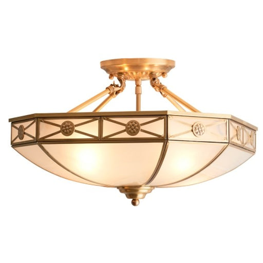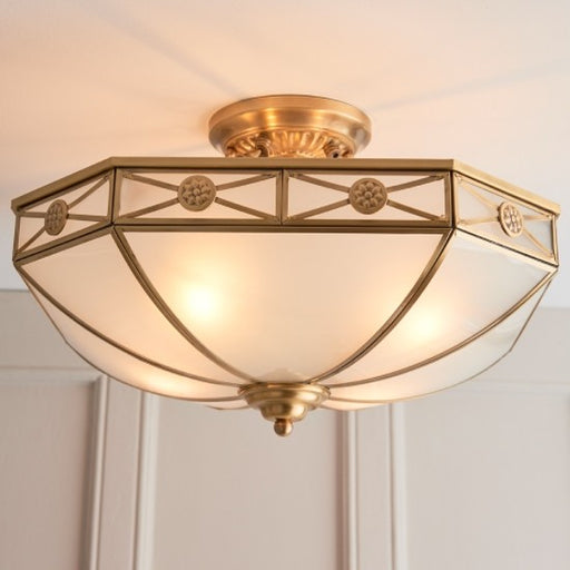 View full detailsBannerman Frosted Glass 4 Lights Semi Flush Ceiling Light In Antique Brass