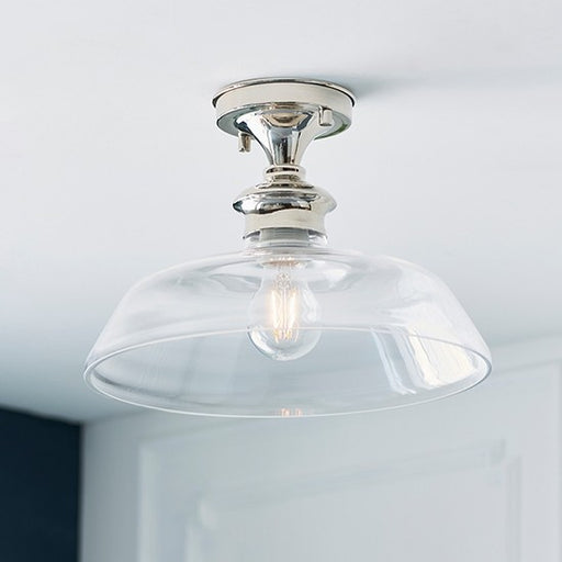 View full detailsBarford Clear Glass Shade Semi Flush Ceiling Light In Bright Nickel