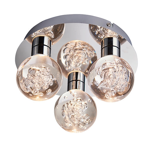 Elegant Lighting UKA 3 light LED flush ceiling fitting finished in a chrome plate with robust glass bubble shades. Comes complete with an LED driver, IP44 so suitable...