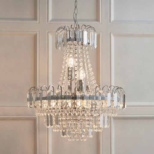 Elegant Lighting UKA luxuriant mix of faceted clear glass and polished chrome creates a stunning centre piece to complement any room. FEATURES:• 6 x 40W E14 candle (b...