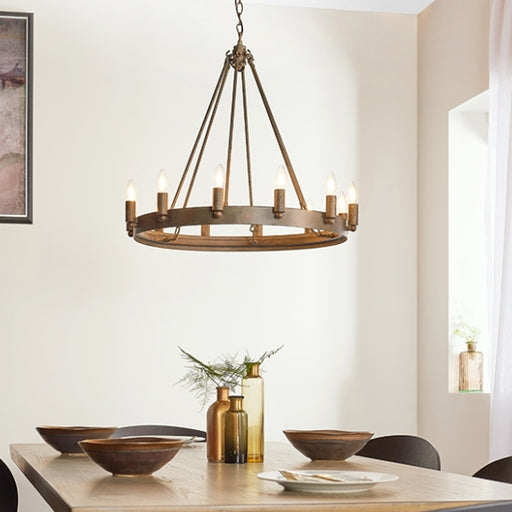 Elegant Lighting UKLarge 12 light ceiling pendant comprising of a metal ring supporting 12 candle style light fittings all in an aged metal effect paint. Height adjus...
