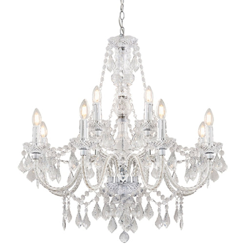 Elegant Lighting UKA 12 light chandelier with clear acrylic beading, facets and droplets. Comes with a fully adjustable chain to extend the drop of the light up to a ...