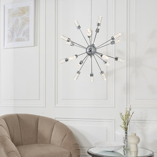 Elegant Lighting UKThe Glacier polished chrome finished pendant is a fabulous centre piece for any living space. 18 LED lights housed in acrylic cylindrical shades wi...