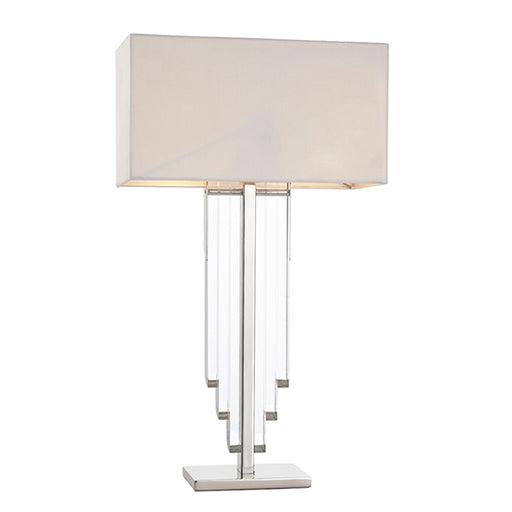 Elegant Lighting UKA beautiful table lamp formed from bars of solid crystal that cascade down in a highly stylised art deco waterfall effect, complemented by a vintag...