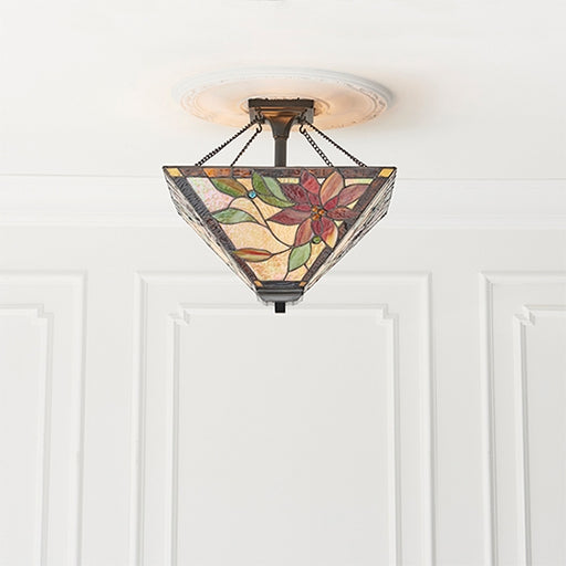 View full detailsLelani Medium 2 Lights Tiffany Glass Semi Flush Ceiling Light In Dark Bronze