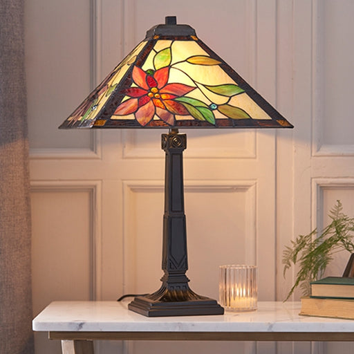 Elegant Lighting UKThe Lelani medium table light is a striking Tiffany design with a bold floral design using vibrant red art glass, completed with a ornate matt blac...