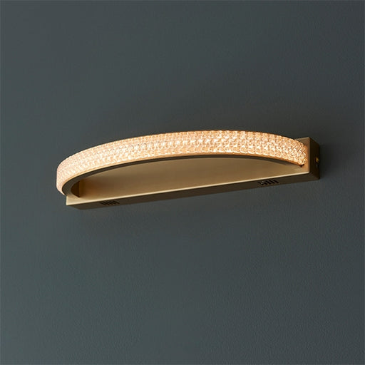 Elegant Lighting UKContemporary designer look wall light with satin gold painted finish. This stunning wall light is encrusted with thousands of clear faceted reflect...