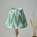 An elegant table light with an authentic switched B22 lamp holder and grey braided fabric flex, finished in brushed aged brass. Paired with our bright Cotswold Green 16cm Zigzag shade to complete the look.