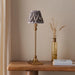 An elegant table light with an authentic switched B22 lamp holder and grey braided fabric flex, finished in brushed aged brass. Paired with our bright Pearl Grey 16cm Zigzag shade to complete the look.