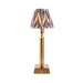 Not tied down by the need for a power cable, this portable, rechargeable 3 stage touch dimmer table lamp enables you to select your own level of light. Classic in style with a reeded stem and square base, finished in aged brass making it easy to place around your home. Turns on for low light then touch controlled to increase light level to medium then bright. Taking just 5.5 hours to fully charge and giving up to 36 hours of continuous light. Place on shelving, hallways, bedsides or dining tables, a truly versatile addition to your home. Paired with our bright Pearl Grey 16cm Zigzag decorative clip-on shade for the perfect timeless style.