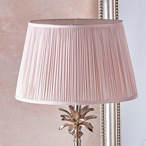 View full detailsLeaf And Freya Medium Dusky Pink Shade Table Lamp In Polished Nickel