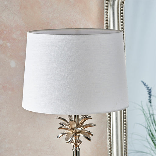 View full detailsLeaf And Freya Medium Vintage White Shade Table Lamp In Polished Nickel