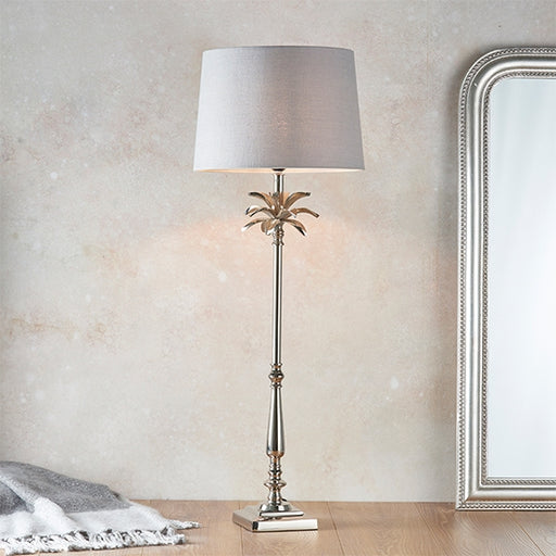 View full detailsLeaf And Freya Tall Silver Shade Table Lamp In Polished Nickel