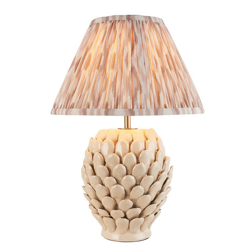 Layered Leaf And Ikat 35cm Neutral Shade Table Lamp With Ivory Ceramic Base