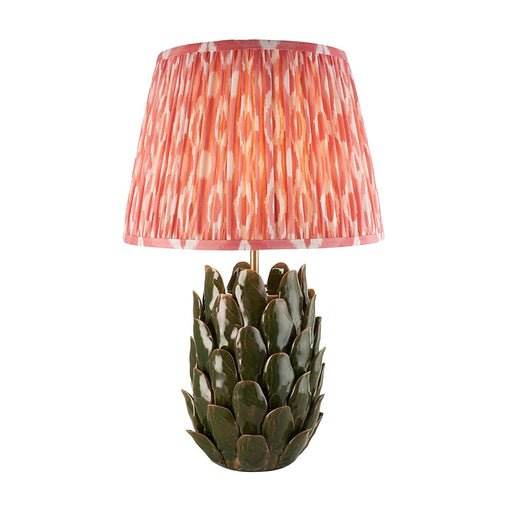 Layered Leaf And Ikat 30cm Coral Pink Shade Table Lamp With Ivory Ceramic Base