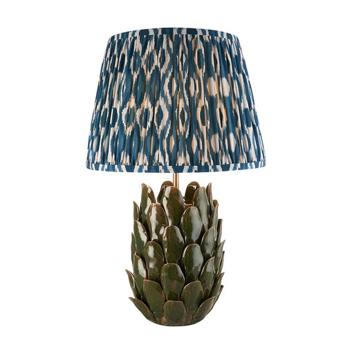 Layered Leaf And Ikat 30cm Marlin Blue Shade Table Lamp With Ivory Ceramic Base