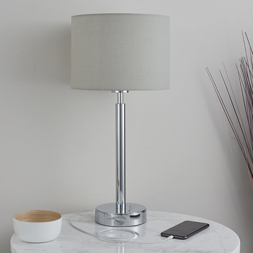 View full detailsOwen Taupe Cylinder Shade Table Lamp With USB In Polished Chrome