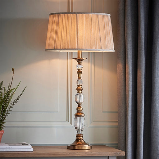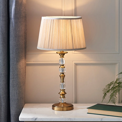 View full detailsOksana Small Beige Shade Table Lamp In Antique Brass