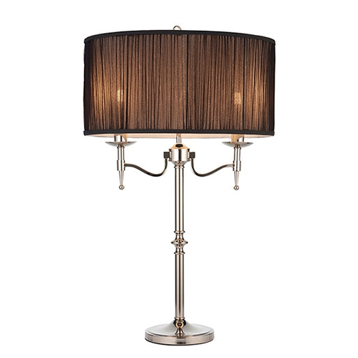 Elegant Lighting UKThis elegant table light from the Stanford Nickel range has beautifully curved arms and simple clean detailing. Its complemented by a pretty, Black...