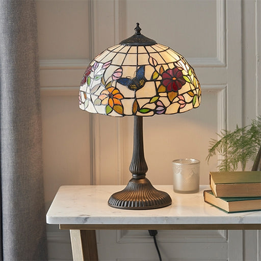 Elegant Lighting UKThe small Butterfly table lamp is a traditional Tiffany design combining flowers and colourful butterflies, made from art glass and teamed with a b...