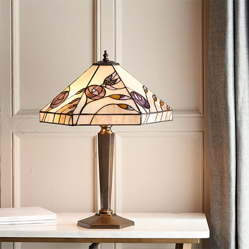 Elegant Lighting UKThis pretty table light depicts a damselfly floating around a Mackintosh inspired rose. Teamed with a traditional bronze effect fitting and compati...