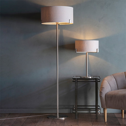 View full detailsHayfield Pale Grey Cylinder Shade Table Lamp In Nickel