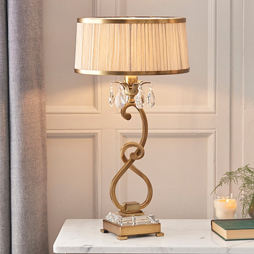 View full detailsOksana Medium Beige Shade Table Lamp In Antique Brass