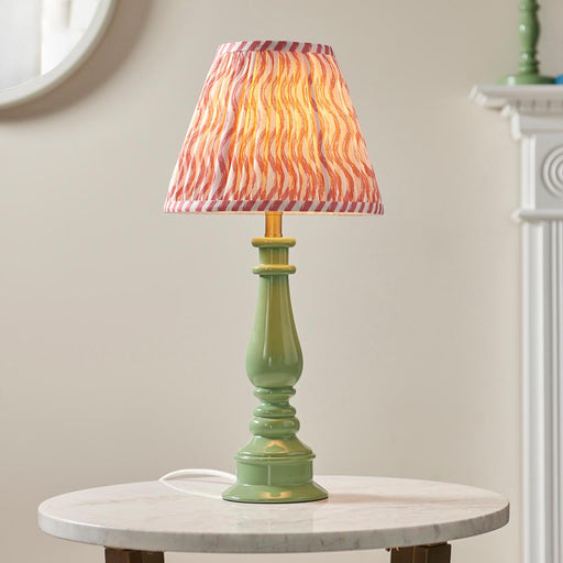 View full detailsMyrtle And Ripple 25cm Coral Pink Shade Table Lamp With Gloss Cotswold Green Base
