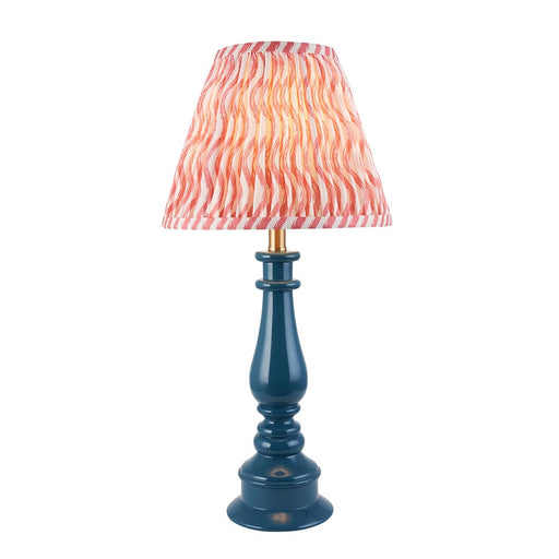 Myrtle And Ripple 30cm Coral Pink Shade Table Lamp With Gloss Marlin Blue Base