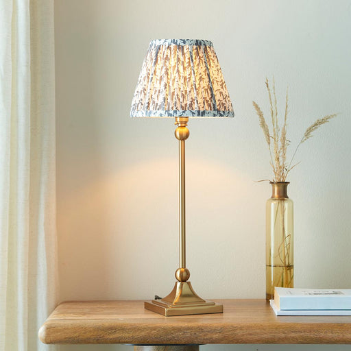 View full detailsSantiago And Leaf 16cm Pearl Grey Shade Table Lamp In Brushed Aged Brass