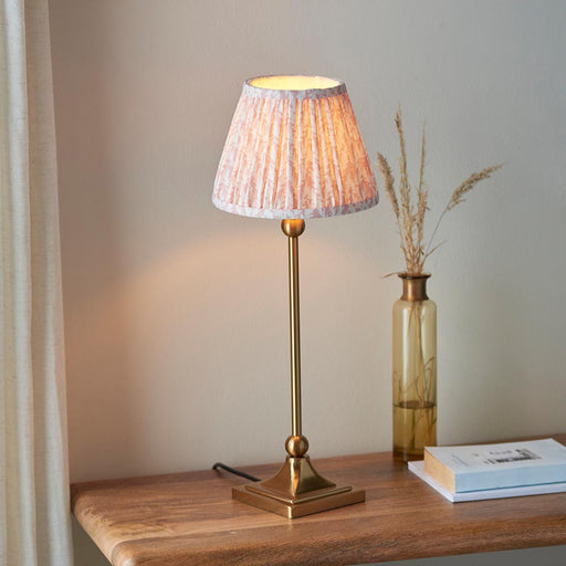 View full detailsSantiago And Ripple 16cm Coral Pink Shade Table Lamp In Brushed Aged Brass