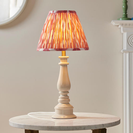 View full detailsMyrtle And Ikat 25cm Coral Pink Shade Table Lamp With Gloss Almond White Base