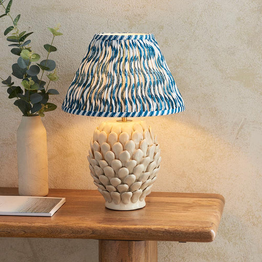 View full detailsLayered Leaf And Ripple 30cm Marlin Blue Shade Table Lamp With Round Ivory Ceramic Base