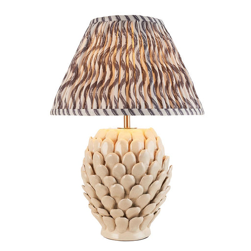 Layered Leaf And Ikat 35cm Pearl Grey Shade Table Lamp With Round Ivory Ceramic Base
