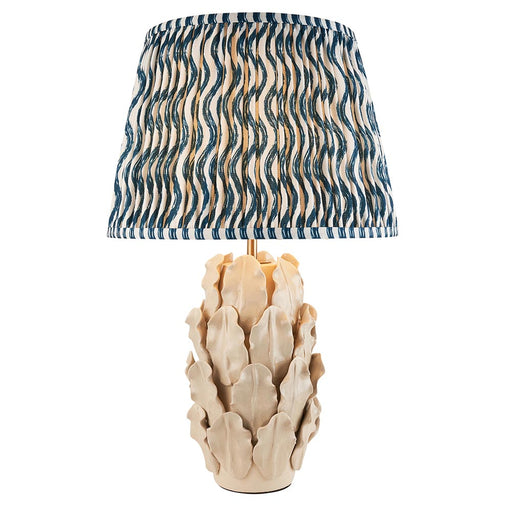 Layered Leaf And Ripple 35cm Marlin Blue Shade Table Lamp With Round Ivory Ceramic Base