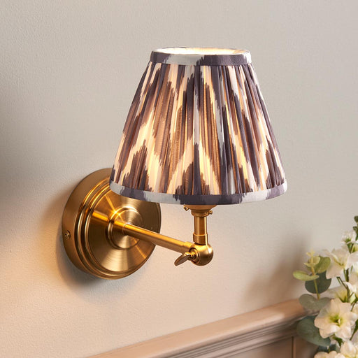 View full detailsDome Wing And Ikat 16cm Pearl Grey Shade Wall Light In Brushed Aged Brass