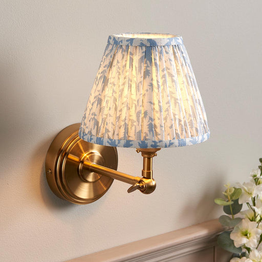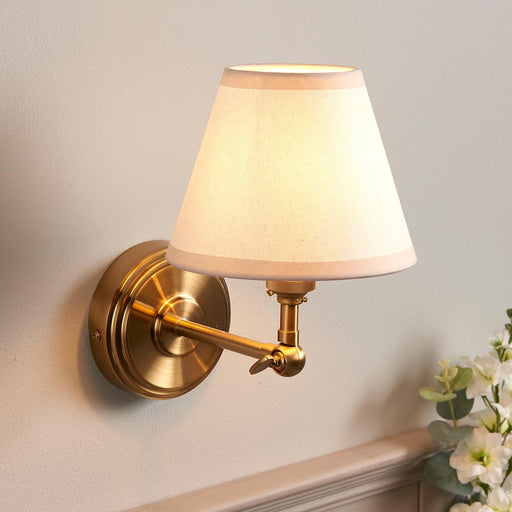 View full detailsOksana Single Beige Shade Wall Light In Antique Brass