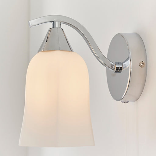 Elegant Lighting UKThe Alonso wall light finished in polished chrome features opal hexagonal glass shade and supplied with a pull cord switch. FEATURES:• 40W E14 cand...