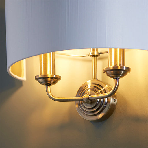 View full detailsHighclere Vintage White Fabric Shade 2 Lights Wall Light In Antique Brass