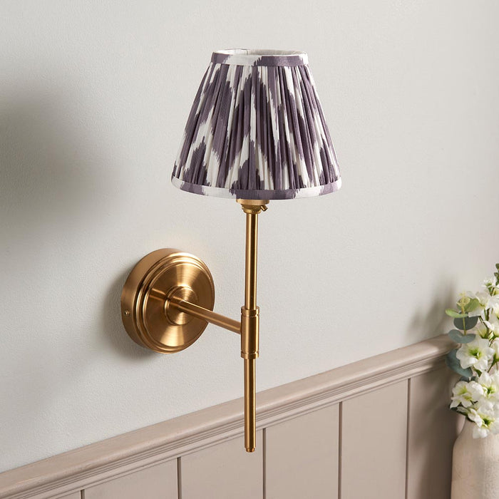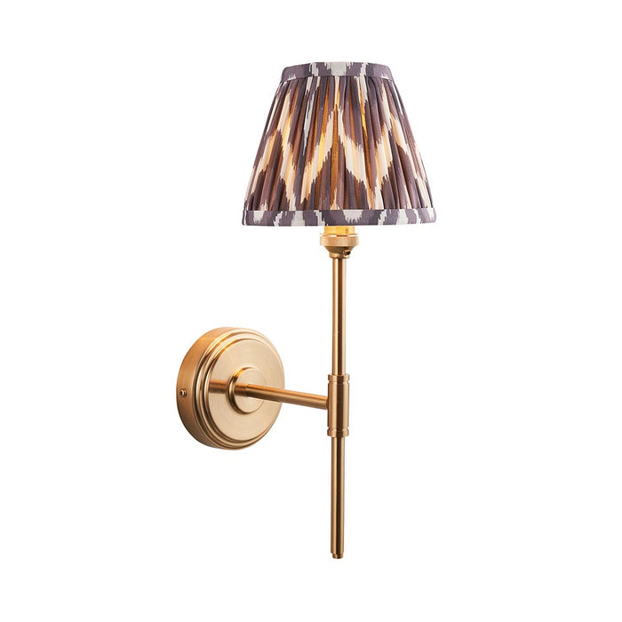 A classic stepped wall light with understated T shape arm. Perfect for many areas of your home, finished in brushed aged brass; paired with our bright Pearl Grey 16cm Zigzag shade.