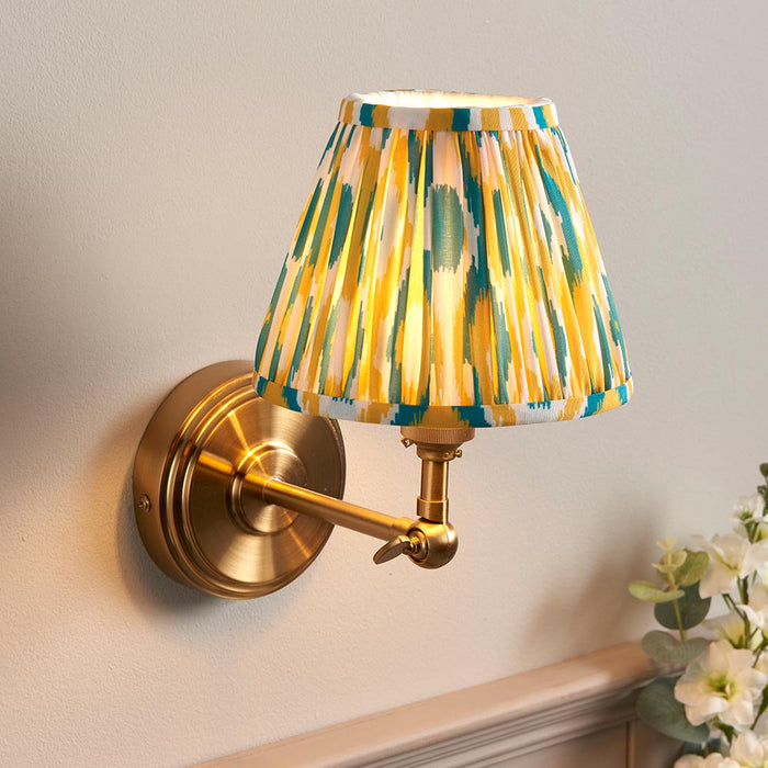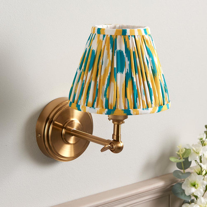 Step Wing And Ikat 16cm Yellow And Jade Shade Wall Light In Brushed Aged Brass